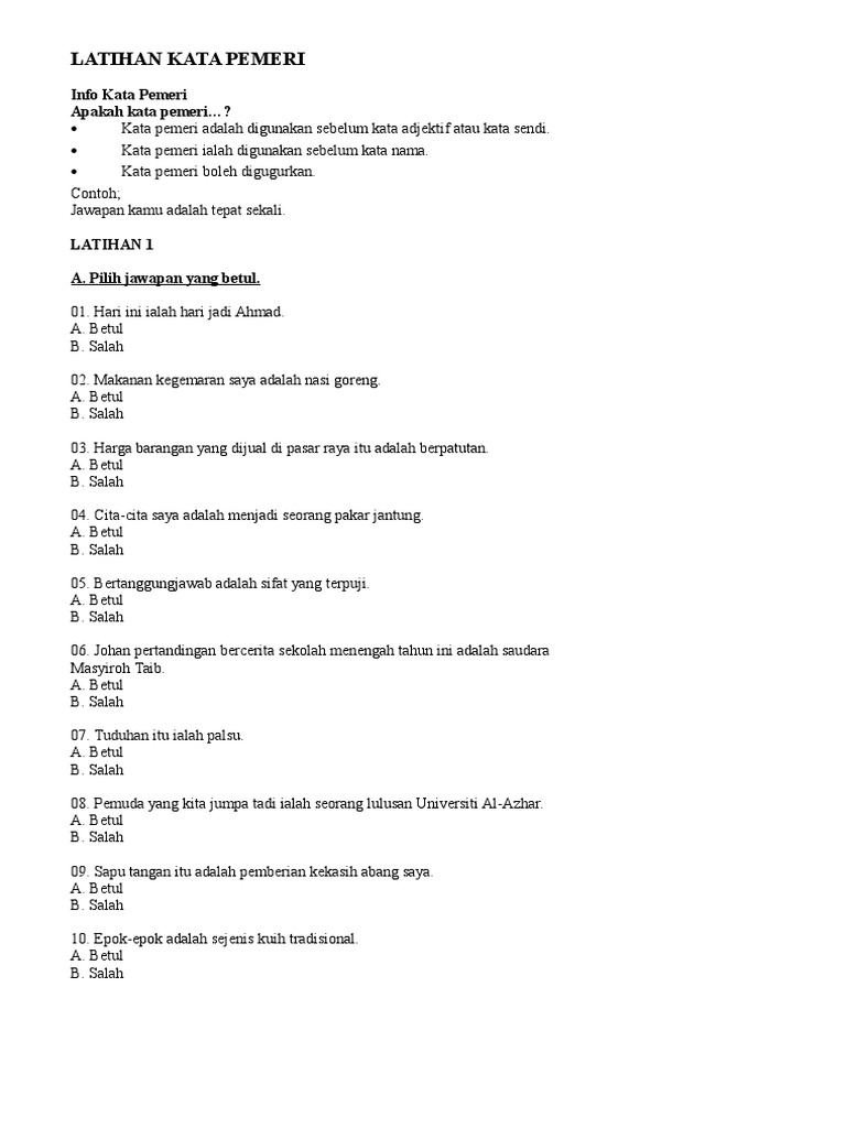 Contoh Soalan Kata Pemeri